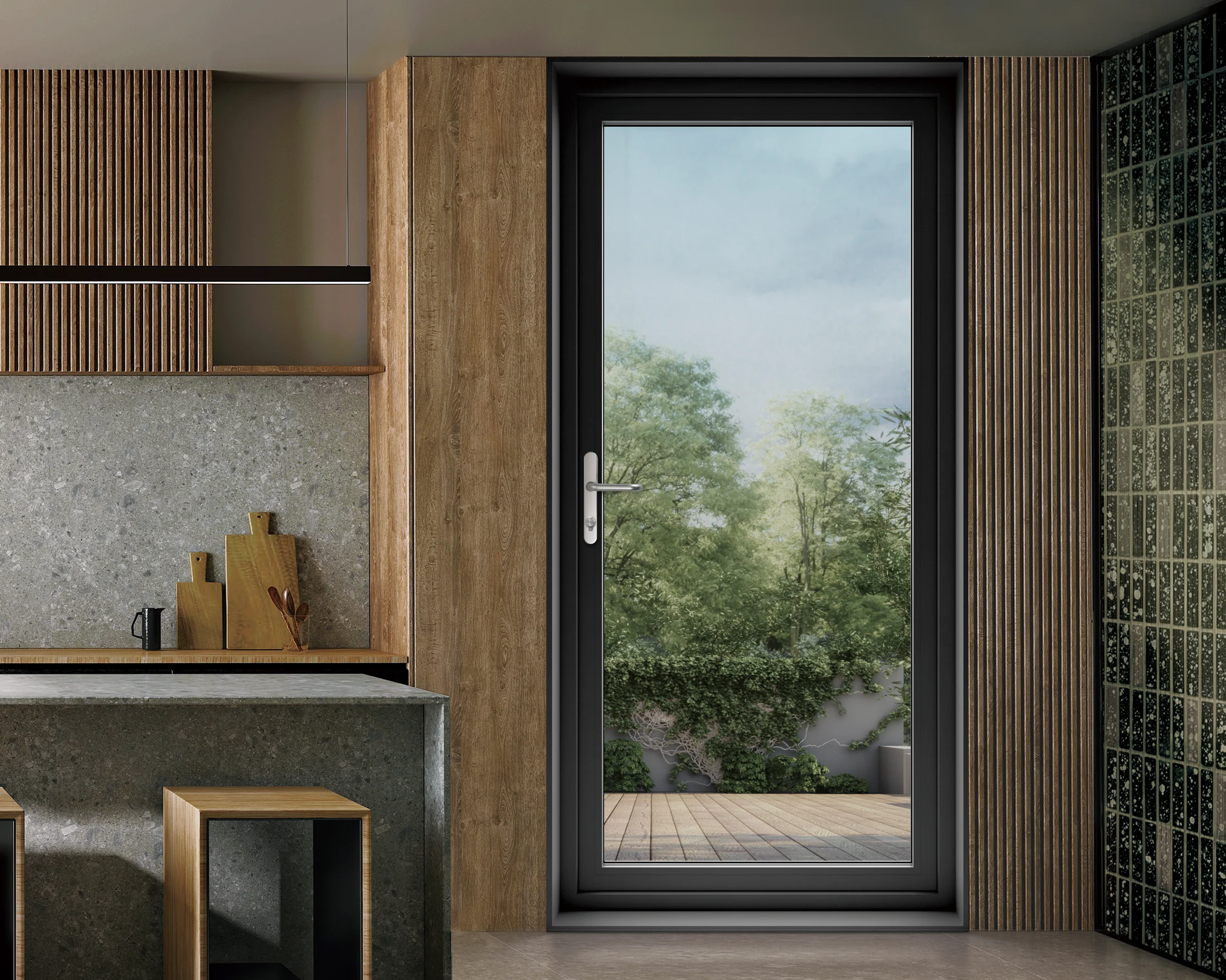 알루미늄의 날렵하고 견고한 특성과 PVC의 탁월한 단열성을 결합한 복합소재는 디자인의 한계를 넘어서는 혁신입니다. 메트로 브론즈와 같은 깊이 있는 다크톤 컬러는 공간에 차분하고 우아한 무게감을 더합니다.